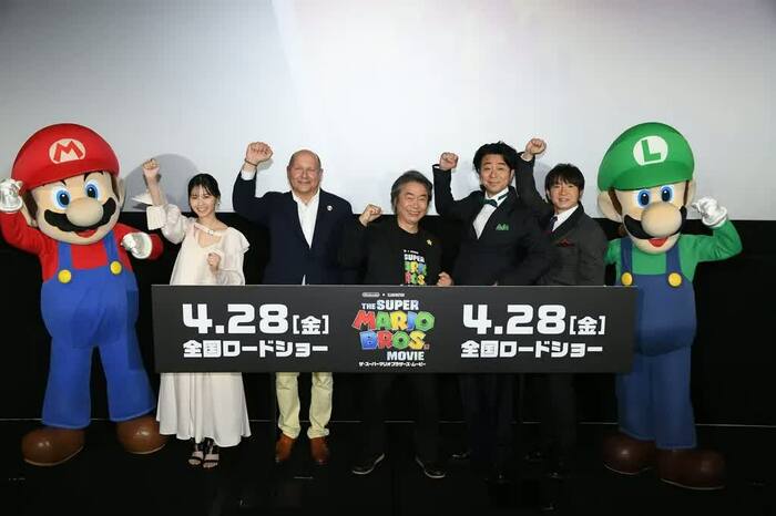 舞台挨拶には、本作の共同プロデューサーであり“マリオの生みの親”である、任天堂代表取締役・フェロー宮本茂さんと、アニメ制作会社イルミネーションCEOのクリス・メレダンドリさんも登壇しました。