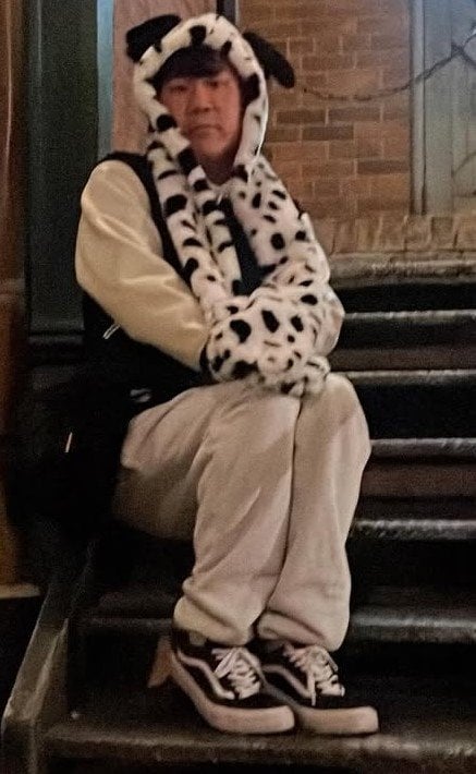 投稿された写真を見ると、『アナと雪の女王』をテーマとしたエリアにある、アレンデール城をバックに映画『101匹わんちゃん』がモチーフのかぶり物をかぶり、全身モノクロコーデで合わせた藤本さんと、その隣には、オラフの大きなぬいぐるみを抱え、アナ風のドレス衣装に身を包んだ次女がおさめられています。