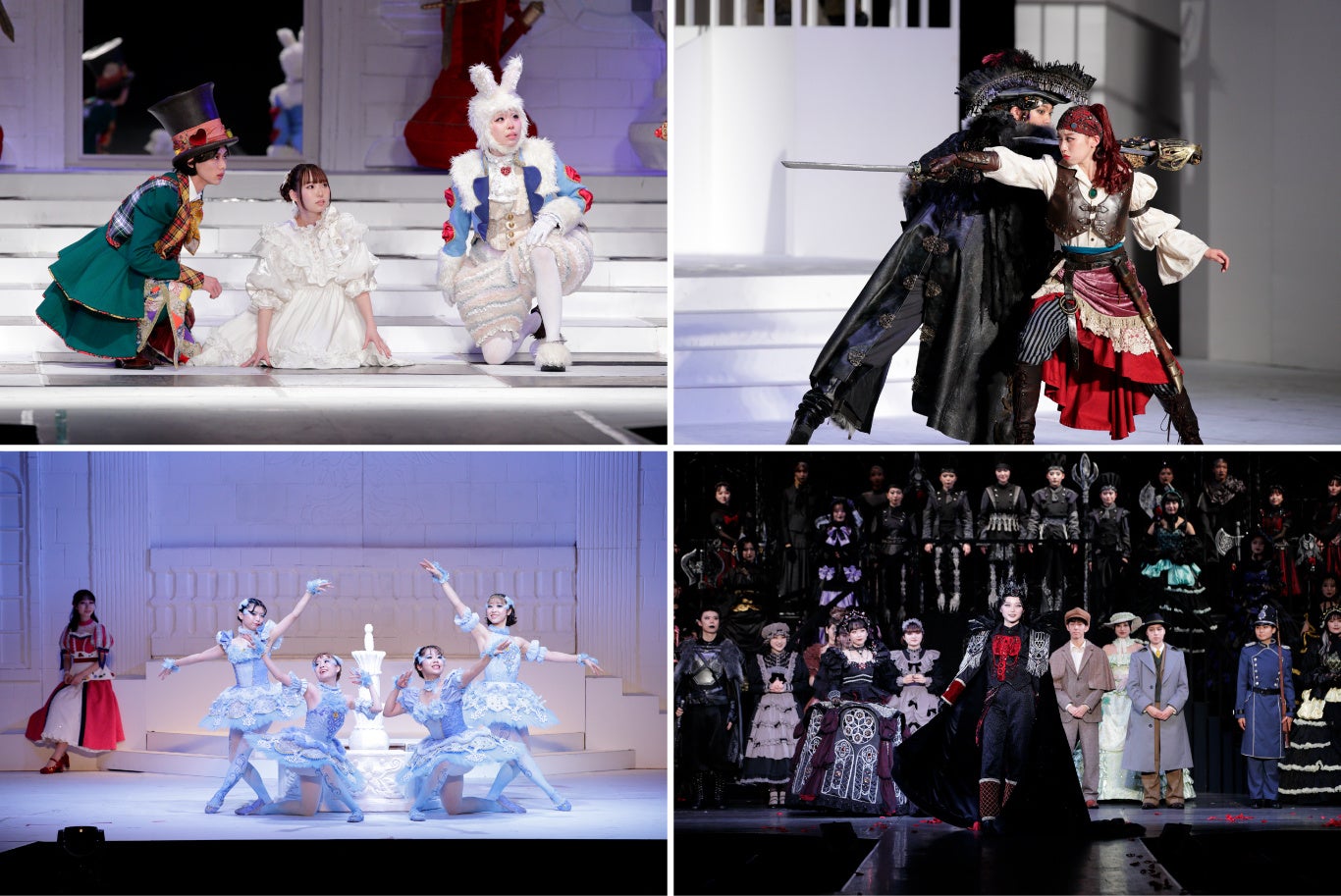 同学科4年生全員が取り組む、ファッションとパフォーミングアーツを融合した総合舞台です。2025年度はウィリアム・シェイクスピア原作の『ロミオとジュリエット』を、過去には『鏡の国のアリス』や『ドラキュラ』『白雪姫』などをテーマに、衣装のデザイン・制作をはじめ舞台制作、シナリオ、演出、音響、アクターなど全てを学生が手掛けています。学生それぞれが4年間で培った「ファッションの表現力」で一つの舞台を作り上げる、学びの集大成です。