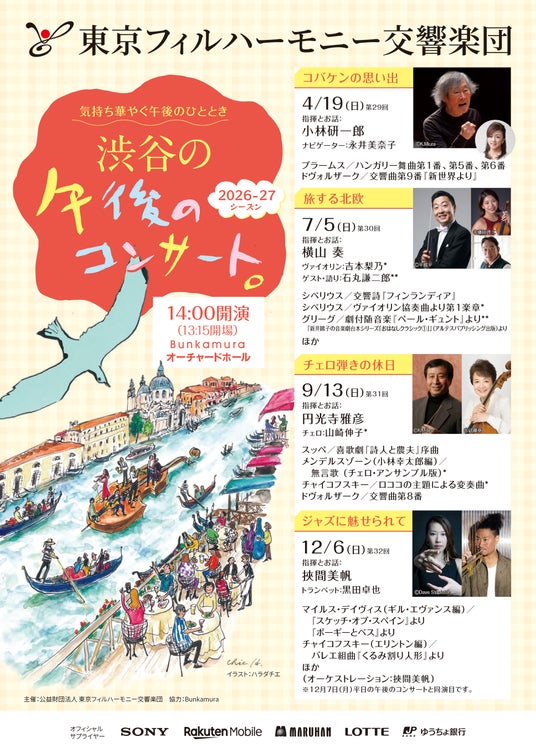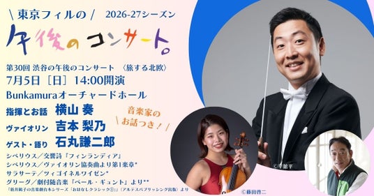 日本最古のオーケストラ「東京フィルハーモニー交響楽団」の名物コンサートが、2026年も開幕。4月に開幕する「渋谷の午後のコンサート」上半期(4月・7月)の1回券チケットは3月16日までWEB優先販売中