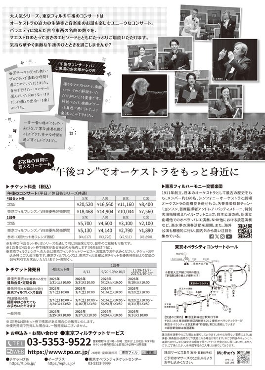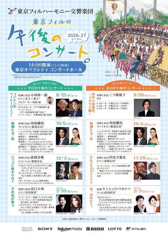 公益財団法人 東京フィルハーモニー交響楽団(以下、東京フィル/所在地:東京都新宿区/理事長:三木谷浩史)は、2001年以来25年にわたり高い人気を誇る「午後のコンサート」シリーズを今年も開催いたします。