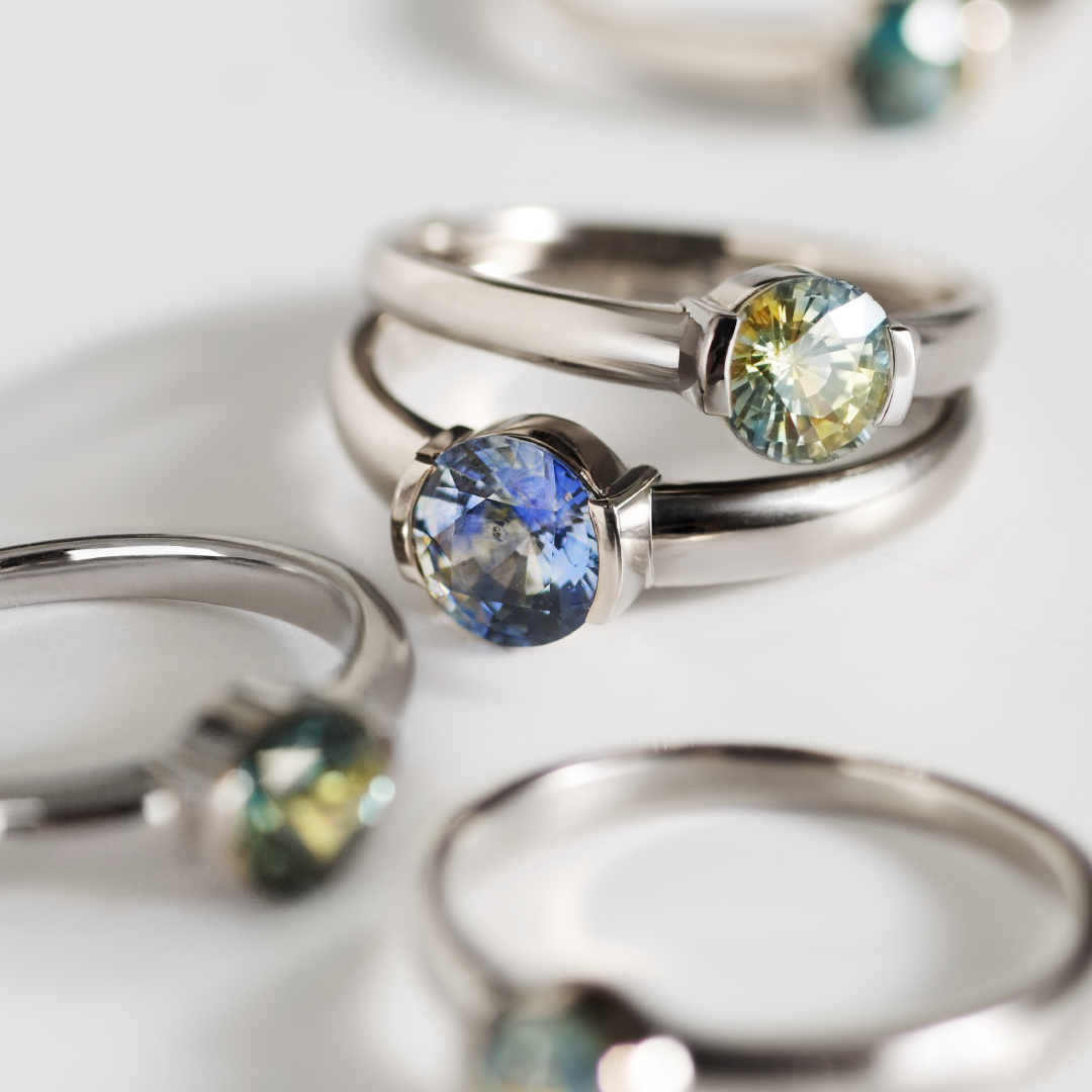 新作のほかにも、多彩な色とカットを宿したサファイアが、豊富にそろっています。