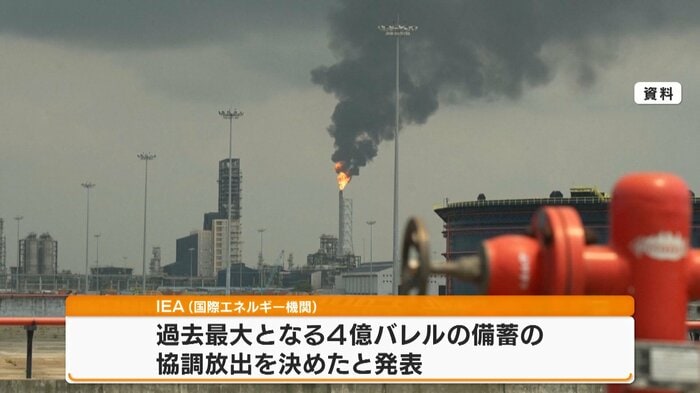 また、IEA=国際エネルギー機関は、過去最大となる4億バレルの備蓄の協調放出を決めたと発表しています。