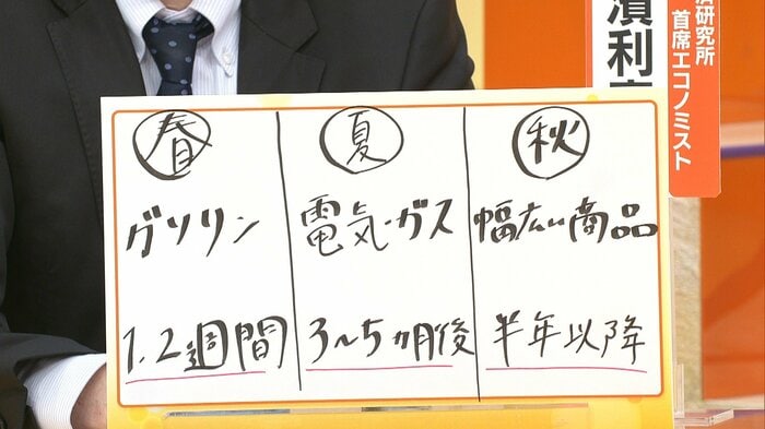 一番遅れて出てくるのが、秋あたりに食料品とか幅広いプラスチック製品とかこういったところおそらく10月、年度後半から値上げが結構進むと思いますから、結構長い期間をかけてじわじわ物価が上がっていくと思います。