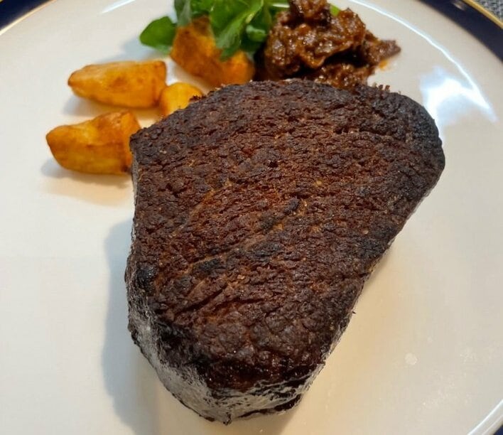 この投稿にSNSでは「お肉、立派で美味しそうですね」「とても立派なお肉!!」「高級そうなレストラン!」「食欲モリモリですね」などのコメントが寄せられています。