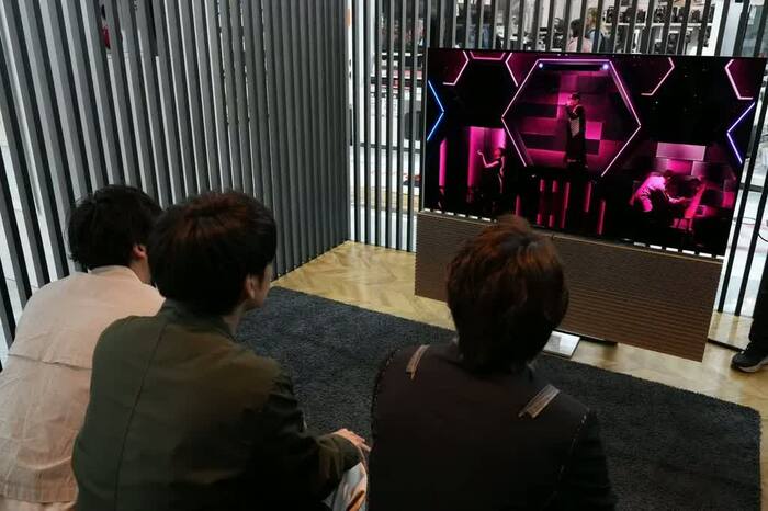 “黒もの家電”売り場では、画面が曲がって没入感を高める最新テレビや、映画館のような音響を実現するワイヤレスのホームサウンドシステムを体感!
