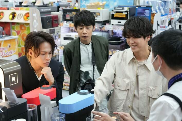 コーヒーメーカー売り場では、亀梨さんが「毎朝飲んでいる」というコーヒーメーカーの新型のマシンで試飲。カフェオレを作った中丸さんは、「店じゃん!」「心にゆとり持てそう」と、便利で美味しいアイテムに感動した様子でした。