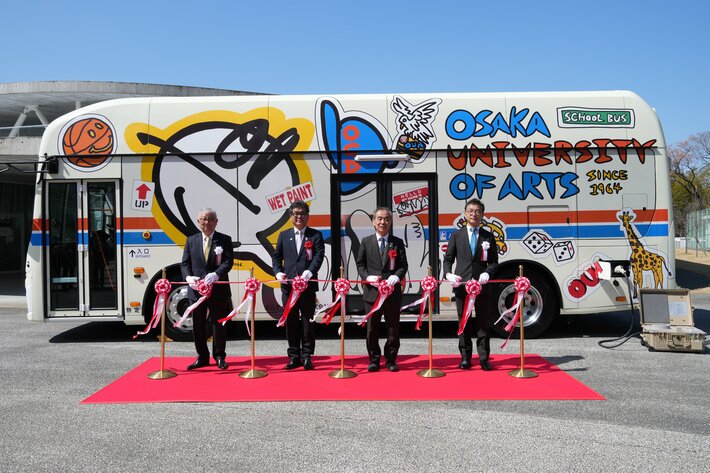 ・ 大阪芸術大学の卒業生がデザインしたオリジナルラッピング電気バスのお披露目出発式を大学内で開催