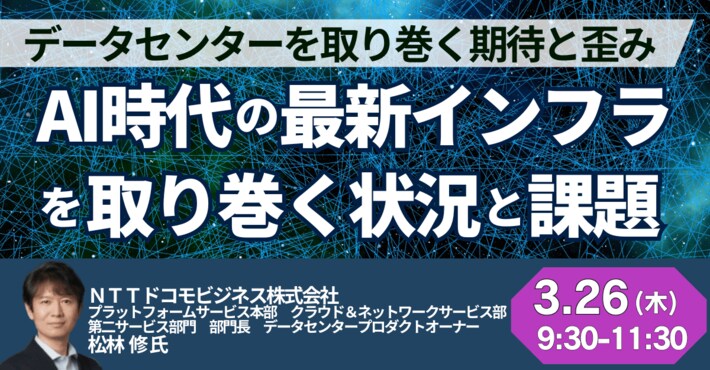 JPI(日本計画研究所)は、NTTドコモビジネス株式会社 第二サービス部門 部門長 データセンタープロダクトオーナー 松林 修 氏を招聘し、AI時代の最新インフラを取り巻く状況と課題、今後の方向性について詳説いただくセミナーを開催します。