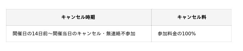 ※上記キャンセル料は、個人での申込の方が対象となります。