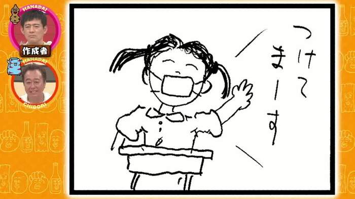 三村さんの作品については、「(1位は)三村さんでしょう!」(山内)「年齢問わず、笑いそうな感じしますし」(ノブ)「タッチもいいですしね」(濱家)という声が上がり、三村さんが上位に来る予想で、みなの意見が一致しました。