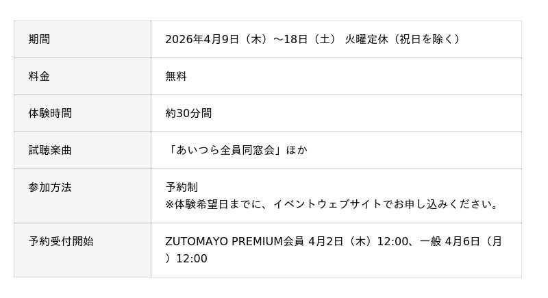 期間:2026年3月27日(金)~5月25日(月)、会場:Yamaha Sound Crossing Shibuya(ヤマハサウンドクロッシング渋谷)