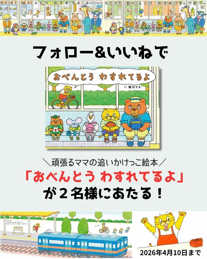 フォロー&リポスト(Instagramではいいね)をされた方から、抽選で2名様に絵本『おべんとう わすれてるよ』をプレゼント!