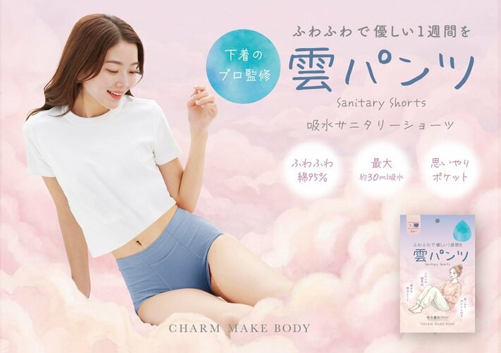 化粧品やアロマ商品を展開する株式会社フォーシーズHD(所在地:福岡市中央区、代表取締役社長: 松野博彦、東証スタンダード市場 証券コード:3726)の子会社である株式会社iiyが展開する下着ブランド「CHARM MAKE BODY」より、吸水サニタリーショーツ「雲パンツ」を2026年4月8日(水)に発売いたします。発売に先立ちまして、3月13日(金)10時より先行予約を開始いたします。