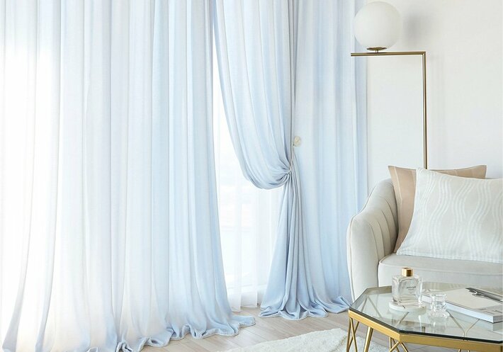 とろんとした落ち感のある美しいシルエットは、天井から床まで贅沢にかけるブレイクスタイルにも映え、空間をより高く洗練された印象に演出します。さらに高い遮像性を活かしてレースonレースのコーディネートを楽しめば、やわらかな光に包まれる開放感あふれる空間に。