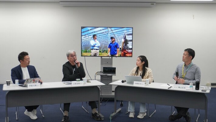 トークセッションは、小原さんの監督作品『陽なたのファーマーズ フクシマと希望』から見えたソーラーシェアリングの可能性について、それぞれの視点から語られました。