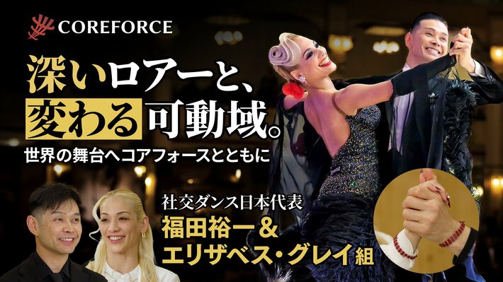 コンディショニングアクセサリー「COREFORCE(コアフォース)」はコアフォースの契約アスリート ボールルームダンス福田裕一&エリザベス・グレイ組の独占インタビュー動画を本日公開いたしました。