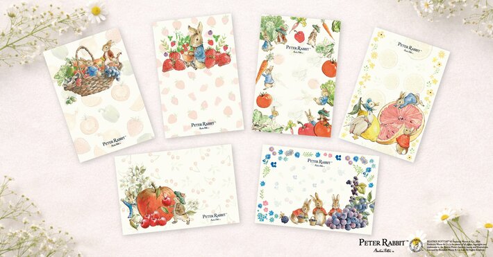 ピーターラビット(TM)の世界を、みずみずしいフルーツ&ベジタブルとともに描いた絵はがきが登場。
