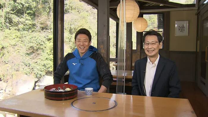 「麺がなめらかなんですね、弾力もすごい。のど越しがいいですね」と、口あたりの良さに感動する松岡さん。神埼そうめんの歴史は約390年前にさかのぼり、病に倒れた修行僧を看病したお礼に手延べそうめんの製法が伝授されたと井上さんが由来を教えてくれました。