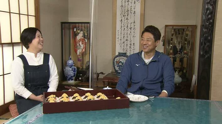 須古ずしとは、須古地区で食べられている500年の伝統を持つ寿司のこと。大きな箱に入った須古ずしを見た松岡さんは「すごいお寿司ですね」と驚きの表情に。