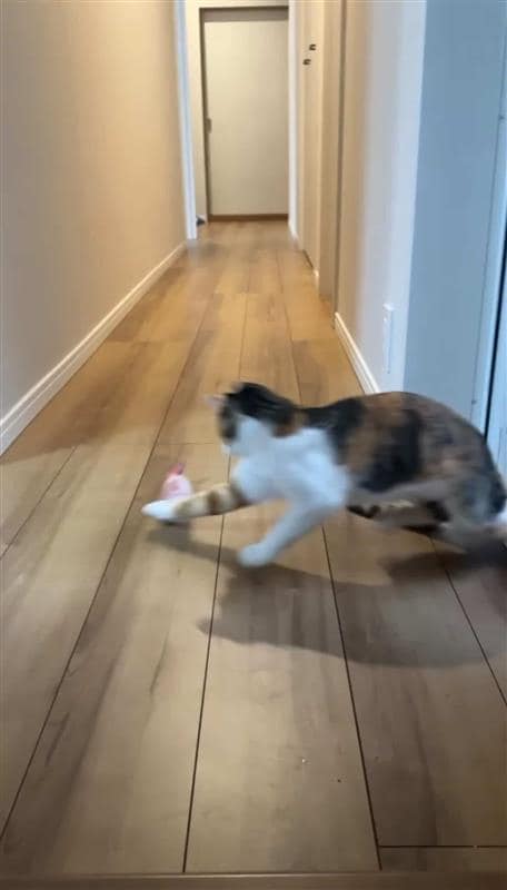 器用に前足を使って遊ぶようです。あまりの速さに飼い主さんであるママも撮影に苦労したといいます。
