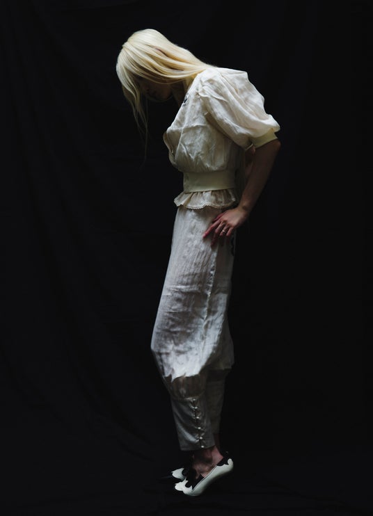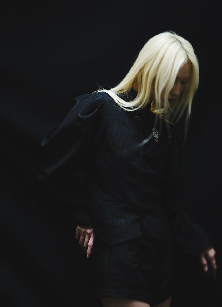 ロマンティックとは、⽢美な装飾や感傷にとどまるものではない。 服の構造や手仕事の痕跡が、人の存在と結びついたときに立ち現れる静かな強さを指す。 ⾊を削ぎ落とした静寂の中で、 クチュールライクな構築や刺繍のひと針、 ラッフルの揺らぎといったブランド独自のディテールがより鮮明に浮かび上がる。 インスピレーションは、1920~60年代のクチュールやヴィンテージの記憶。 アンティークホワイトの室内着に宿る静謐さと親密さ、 そして70年代のレトロスポーツが纏うノスタルジックな軽やかさ。 異なる時代の気配を重ね合わせ、服は新しいフォルムとバランスを獲得する。 過去と未来、クラシックとモダン、静謐と躍動。 それらが交差する中に、曖昧な余⽩を抱きながら── 「新しいロマンティックの形」を提示する。