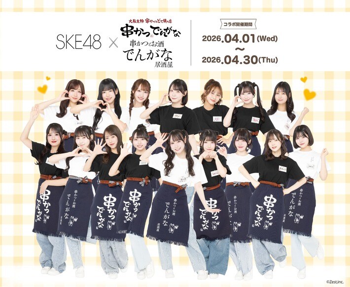 株式会社フォーシーズ(東京都港区南青山 代表取締役会長兼CEO:淺野 幸子)が運営する串かつ居酒屋『串かつ でんがな』とネオ居酒屋『串かつとお酒 でんがな』の5店舗では2026年4月1日より期間限定で、名古屋を拠点に活動するアイドルグループ『SKE48』の新曲リリースを記念した店舗コラボレーション「SKE48×でんがなだぜ」を実施いたします。