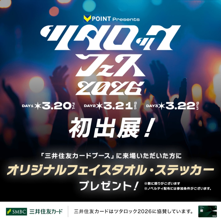 三井住友カードは、音楽フェス「ツタロック2026」に協賛し、来場者がよりフェスを楽しめる特別企画として会場内に三井住友カードブースを出展します。