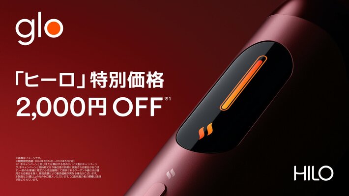 ブリティッシュ・アメリカン・タバコ・ジャパン合同会社(本社:東京都港区、代表:マウリシオ・ララ、以下「BATジャパン」)は、革新的な加熱技術TurboStart(TM)テクノロジーを搭載した加熱式たばこデバイス「glo(TM) Hilo(グロー・ヒーロ)」および「glo(TM) Hilo Plus(グロー・ヒーロ・プラス)」を、2026年3月16日から3月29日までの期間限定で特別価格(※2)にて販売します。