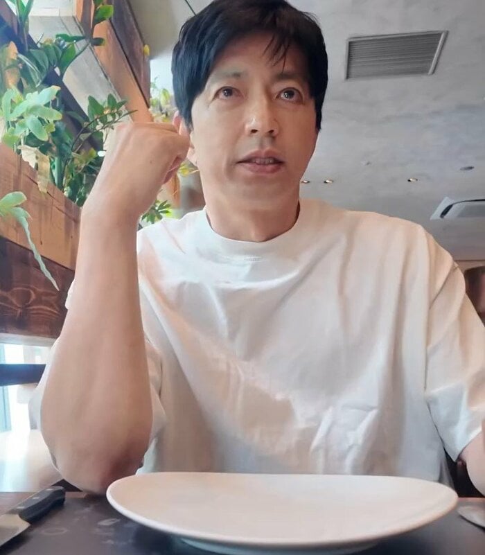 1本の動画には、レストランの店内で空のお皿を前に座る白いTシャツを着た大沢さん。