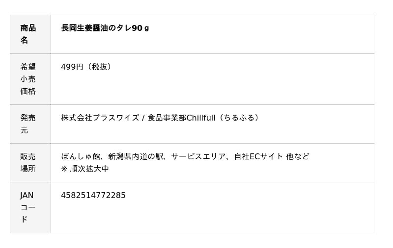 長岡生姜醤油のタレの詳細は下記PDFをダウンロードし、ご確認ください。
