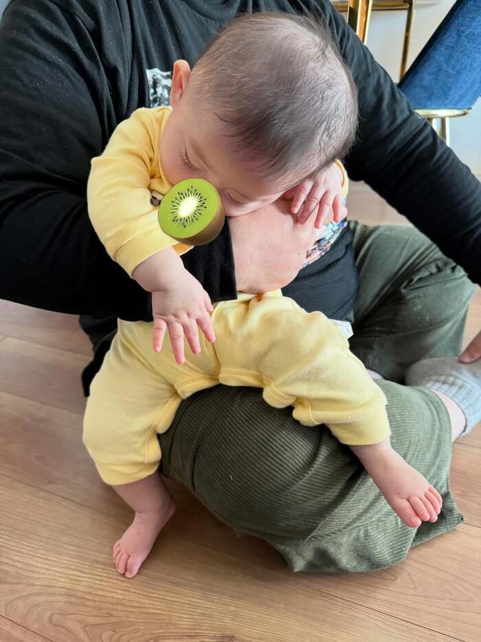 さらに、膝の上に抱えられながら背中を丸めた、なんだか哀愁漂うような弟くんの後ろ姿を披露した中川さん。