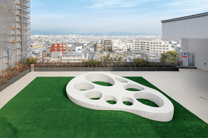 建物に入って、門真市の少し入り組んだまちなかを散策するように階段を上っていくと、行く先々で初めて見る世界に触れられたり、そしてテラスに出ると今度は本物の門真市の街並みが拡がっています。歩いているうちに、改めて街の魅力に気付く、そんな場所になるように設計しています。