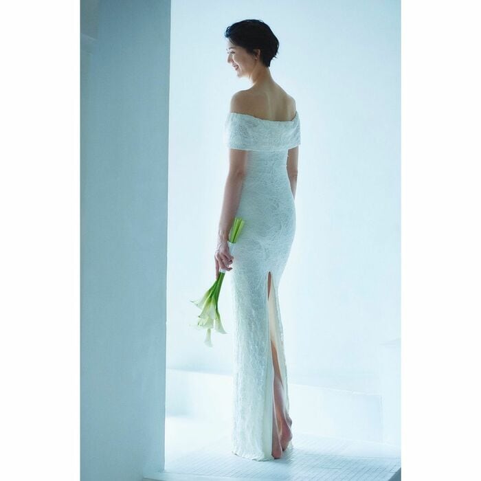 その翌日の投稿で、新たにウェディングドレスを着たショットを公開しました。