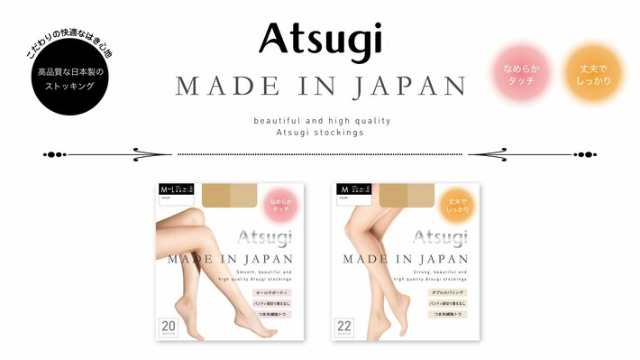 アツギ株式会社(本社:神奈川県海老名市、代表取締役社長:日光信二)は、2026年春夏シーズンの新商品として、確かな品質と丈の短いボトムスも綺麗に着こなせるファッション性を併せ持つ日本製ストッキングを発売いたします。肌触りがなめらかな「なめらかタッチ」と丈夫で破れにくい「丈夫でしっかり」の2型をご提案します。アツギオンラインショップ及び店頭では2026年3月下旬以降順次展開いたします。