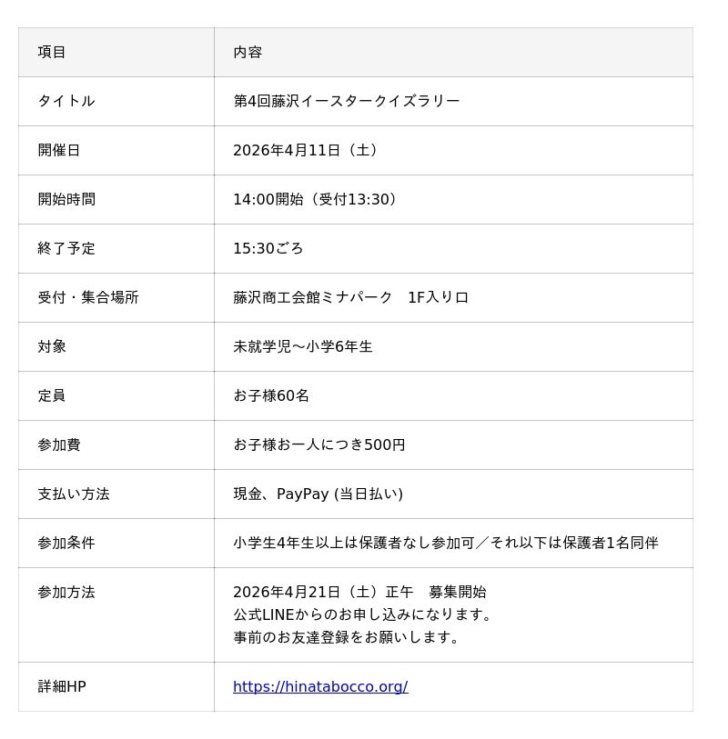 4月11日(土)第4回 藤沢イースタークイズラリー