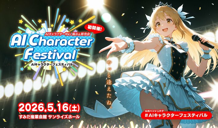 AIキャラクターフェスティバル実行委員会は、生成AIクリエイターによる展示・即売会「AIキャラクターフェスティバル in すみだ産業会館」を2026年5月16日(土)に開催いたします。この度、出展クリエイターの一次募集を開始いたしました。
