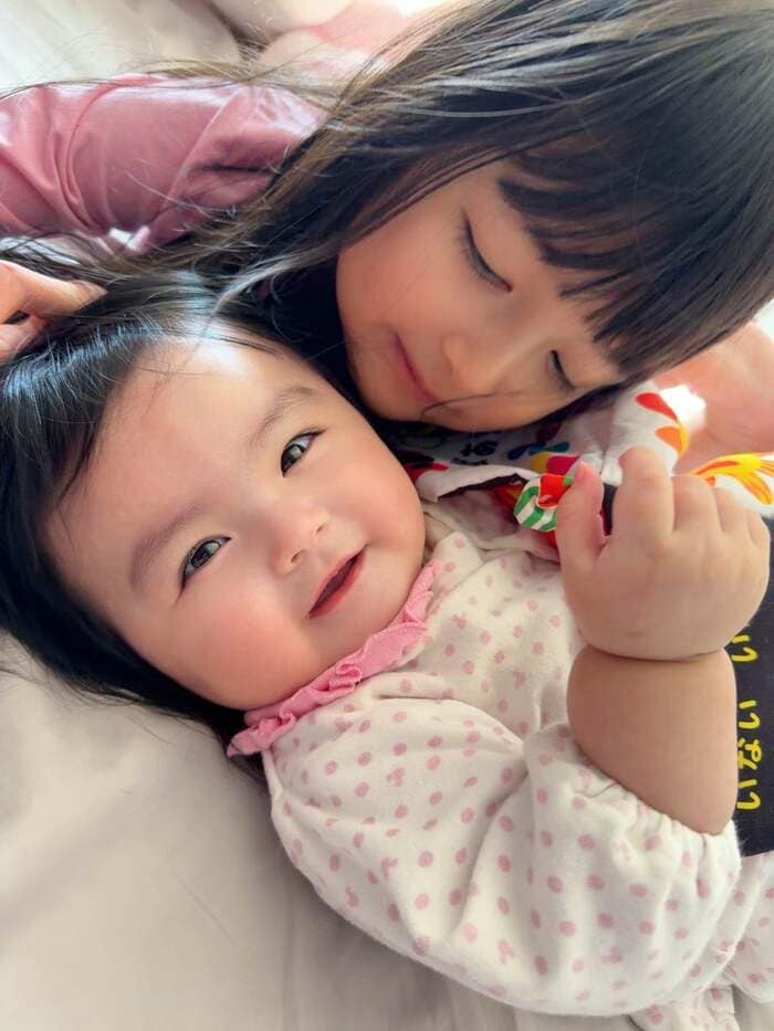 また、ぷくっとした頬が愛らしいショットでは、"美人ちゃん"が寄り添っています!優しいまなざしを送っていて、なんともステキな姉妹です。