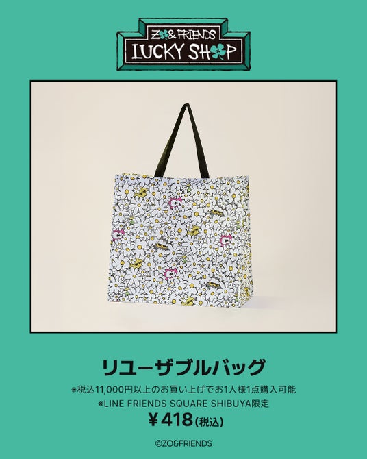 LINE FRIENDS SQUARE SHIBUYA POP-UP会場にて税込11,000円以上のお買い上げでリユーザブルバッグ1個を税込418円でご購入いただけます。