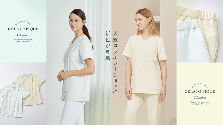 テーラード技術を取り入れた白衣を中心に、メディカルアパレルの企画・製造・販売を行うクラシコ株式会社【創業:2008年 / 所在地:東京都港区 / 代表取締役CEO:大和 新(おおわ あらた)】は、株式会社マッシュスタイルラボ(東京都千代田区/代表取締役社長 近藤広幸)が展開するルームウェアブランド「gelato pique(ジェラート ピケ)」とのコラボレーションによる看護師・医療従事者に向けた新色を2026年3月5日(木)より販売開始いたします。