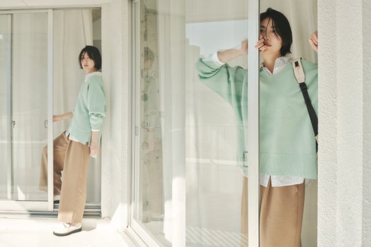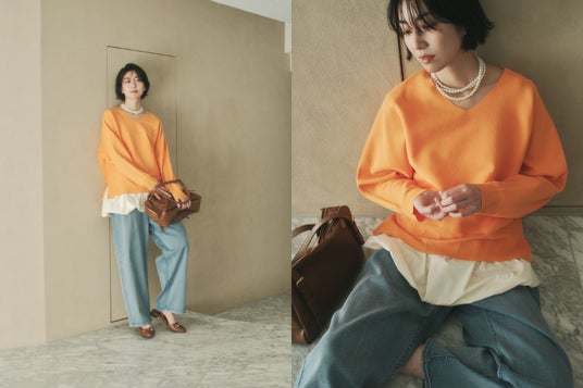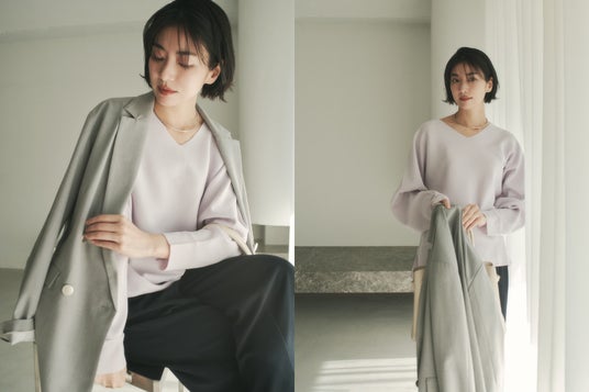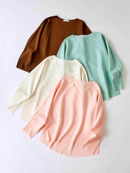 この春、EluraはWEB限定企画第4弾として、きれいな春色が映えるVネックニットを制作しました。昨年春に大好評で即完売となった「もっちり立体オーバーカーディガン」と同じもっちり素材を使用。素材に加え、身体のラインを拾わない緩やかなシルエットや程よく開いた絶妙なVネックなど、前回好評だったポイントを抑えながら細部まで調整。“大人の悩みに効く” Eluraらしさを追求した新作ニットとなっています。