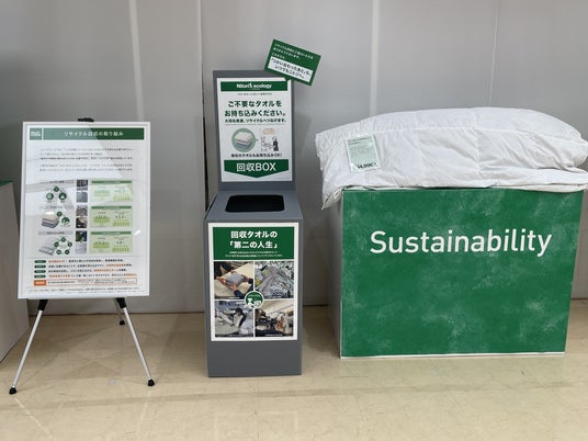 さらに、電子レンジで焼き目がつく食洗機対応の「レンジグリルシリーズ」など、実演を交えながら完成した料理を実際に味わっていただいたり、ご家庭で不要になったタオルを回収したりする体験ブースも設けました。