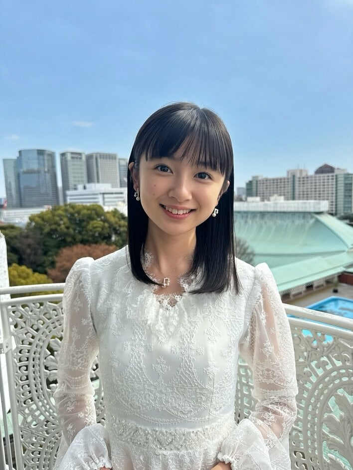 どアップを収めたショットでは、控えめなネックレスとイヤリングが清楚な印象を引き立てていて、親しみやすい表情を見せています