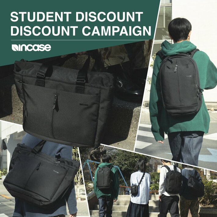 ガジェットバッグブランド「Incase(インケース)」は、学生の皆さまを対象とした学割キャンペーン「STUDENT DISCOUNT CAMPAIGN」を現在開催中です。