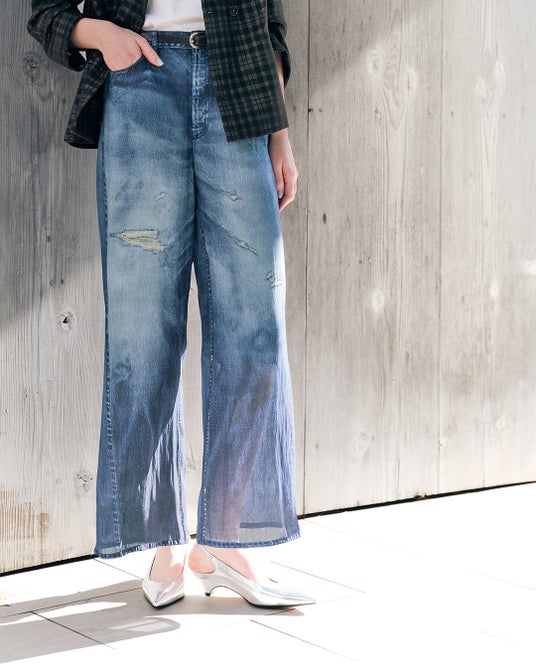 ベースとなる生地には、夏の暑い時期にも心地よく、驚くほど軽やかな福井県産の素材を採用。重厚なデニムの視覚情報と、羽衣のような軽やかな着用感。その心地よいギャップこそが、大人の遊び心をくすぐる究極の騙し絵(トロンプ・ルイユ)を完成させます。