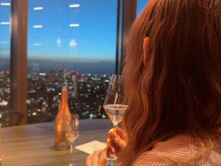 旦那さんが撮影したと思われるショットでは、きらめくビル街を眺めながらグラスを持つ中川さんの後ろ姿や…。