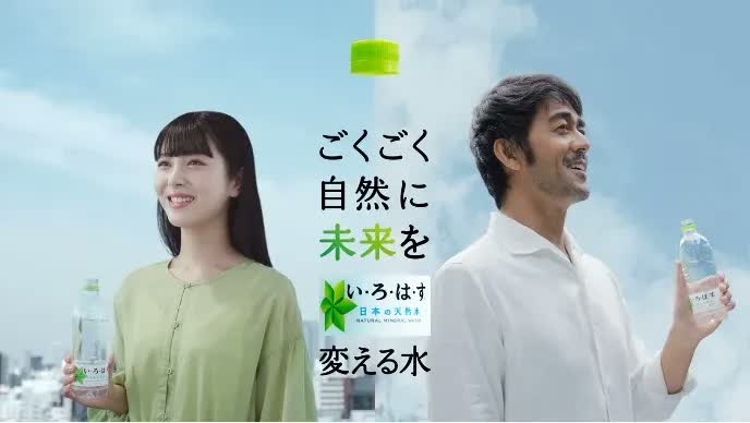 新CMでは、「い・ろ・は・す」の新しいブランドテーマである、「ごくごく自然に未来を変える水」を伝えています。