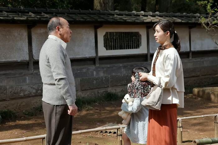 由真(足立梨花)と亜子(加藤柚凪)を残して、ミキは東京へお焼香をあげに行くが、そこで待っていたのは「俺より先に死にやがって、最期まで気の利かない女だな」と悪態をつくアキの夫・耕吉(秋野太作)と、そんな父親に手を焼いている様子の娘・博美(中島ひろ子)の姿だった。