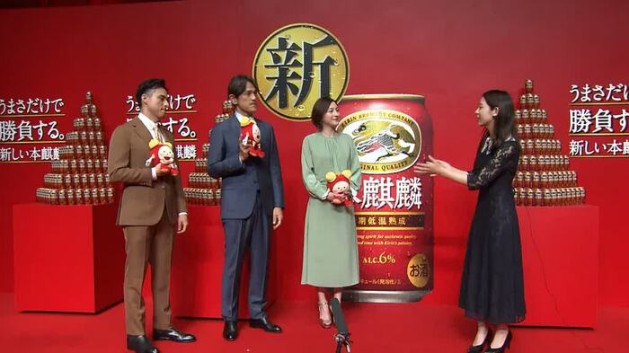 5月18日、キリンビール「本麒麟」のリニューアル発表会&新テレビCM発表会が行われ、タモリさん、江口洋介さん、広末涼子さん、満島真之介さんが登場。
