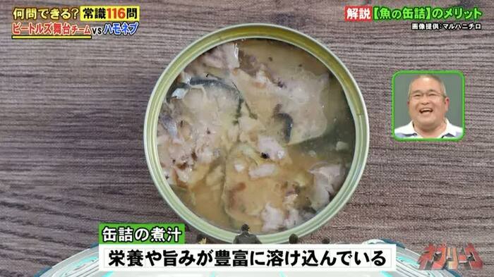 魚介類の缶詰に使われている魚の種類を答える問題では、缶詰についての豆知識を地理担当の村瀬哲史先生が教えてくれました。